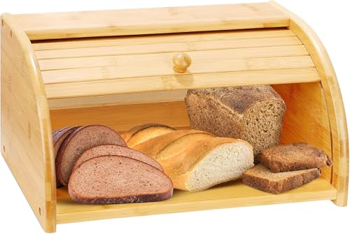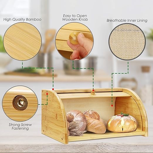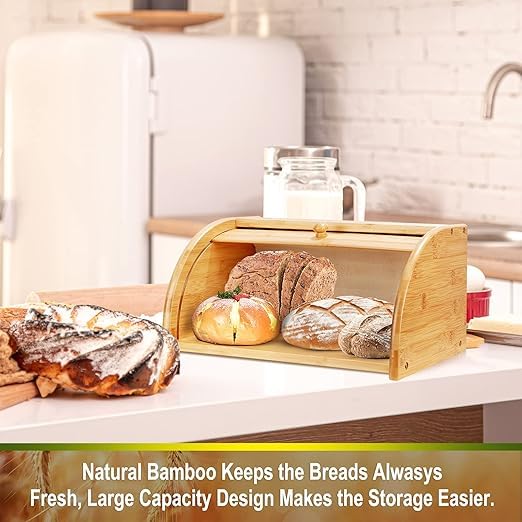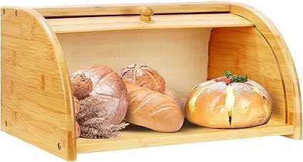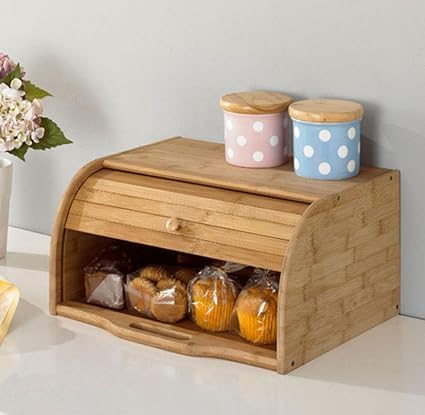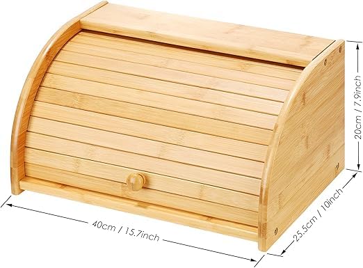 Generic - صندوق خبز خشبي مع غطاء علوي ملفوف لحفظ المخبوزات ومناسبه لحفظ الطعام و لترابيزة المطبخ،
