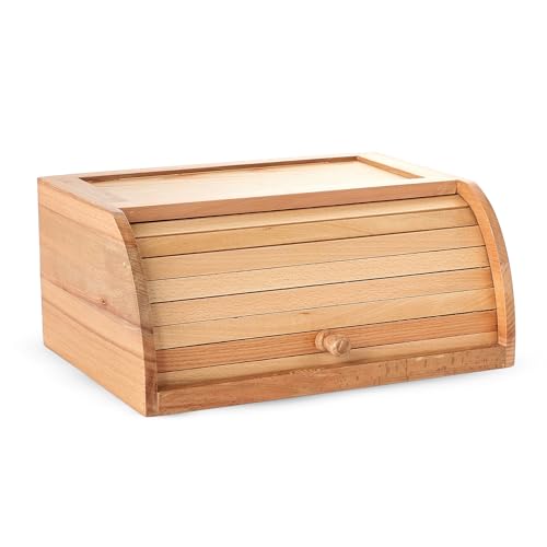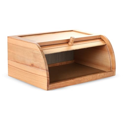 Generic - عياشة خبز خشبية مع غطاء علوي ملفوف، حاوية تخزين للمطبخ مع باب منزلق