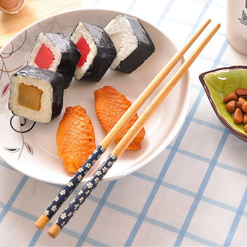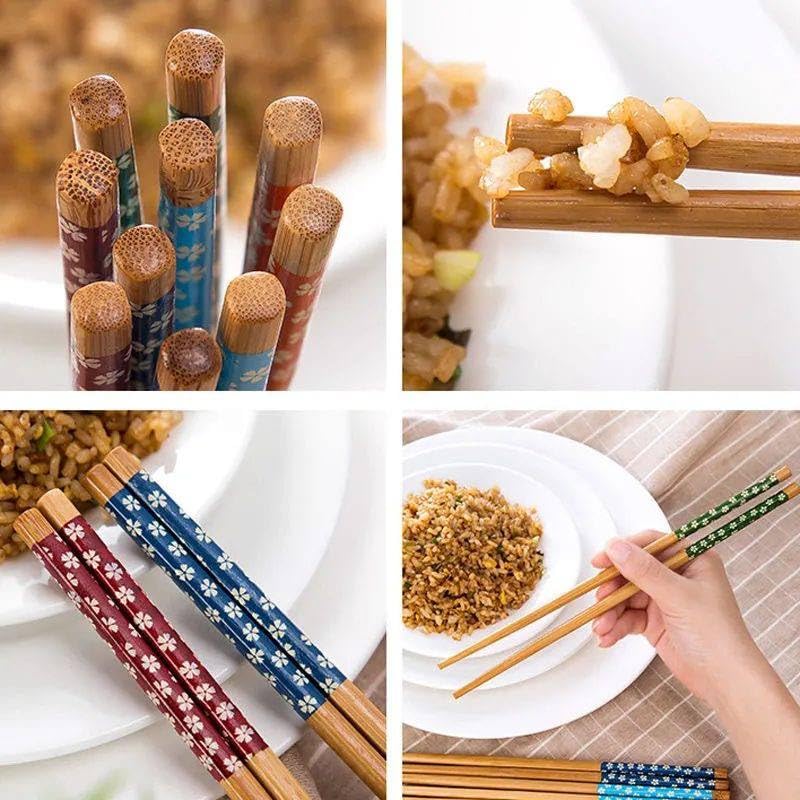 Generic - عيدان طعام خشبية بتصميم ياباني، أعواد أكل بامبو بنقوش زهور، مجموعة أدوات مائدة آسيوية، متعددة الألوان
