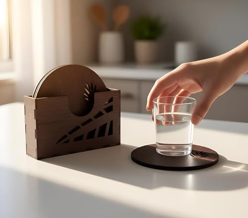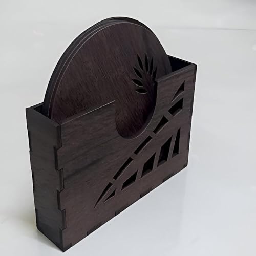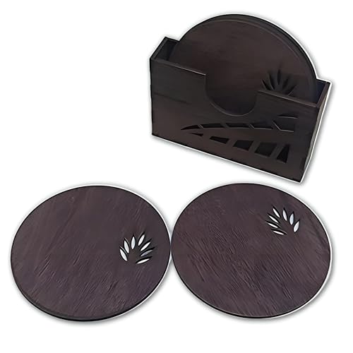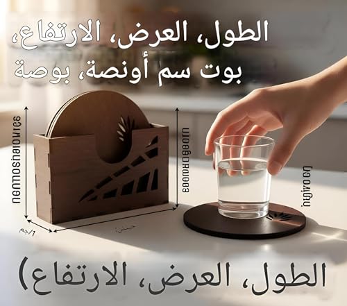 Generic - مجموعة حامل اكواب خشبية - تتضمن 5 قواعد اكواب بلمسة نهائية ناعمة وقاعدة خشبية بسيطة لسطح الطاولة الانيقة