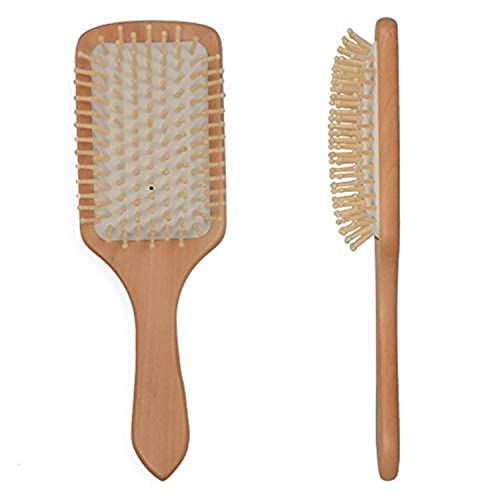 غير معروف - مشط خشبي مجداف وفك تشابك وسادة هوائية تنعيم وتدليك فروة الرأس على شكل مربع فرشاة شعر للجنسين