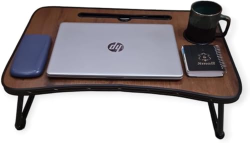 Generic - طاولة خشب محمولة بأرجل قابلة للطي مع فتحة للتابلت والنوت بوك، طاولة كمبيوتر محمول