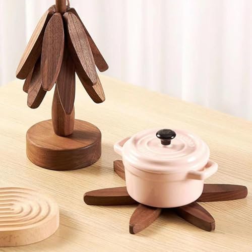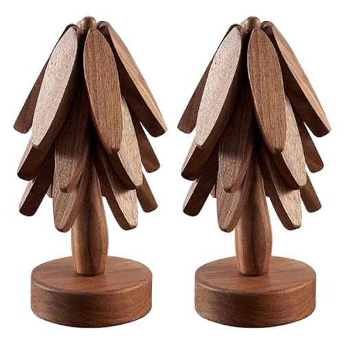 Piegricdiat - قاعدة اكواب خشبية على شكل شجرة، مجموعة قواعد اكواب شجرة، حامل اكواب شجرة، قاعدة اكواب شجرة قابلة للتكديس، حوامل خشبية للاطباق الساخنة، مجموعة قواعد اكواب على شكل شجرة لابريق الشاي الساخن (جوزي