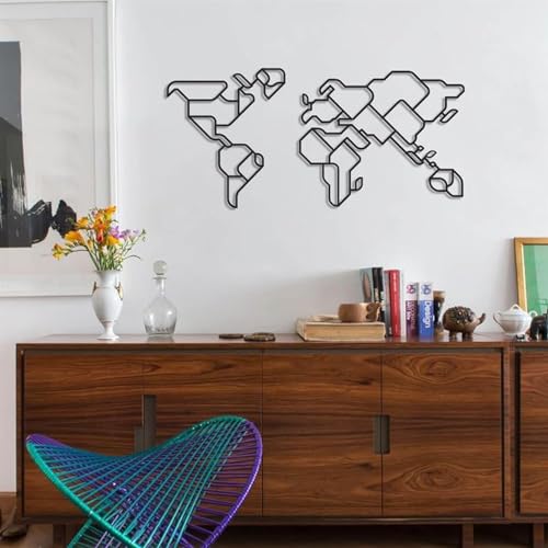 Generic - تابلوه حائط فني خشبي بتصميم خريطة العالم أسود