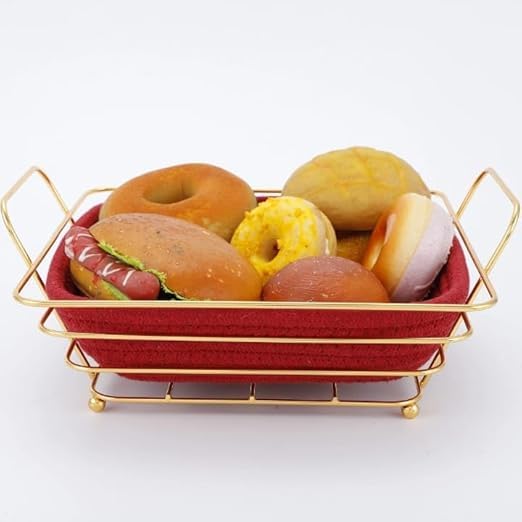 Generic - سلة خبز منسوجة متعددة الاغراض لتنظيم الوجبات الخفيفة والفواكه والخبز والمطبخ وغرفة المعيشة، لون احمر