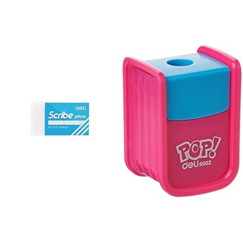 deli - حزمة اساسيات الكتابة (ملصق ممحاة ديلي، قطعة واحدة، ابيض + مبراة اقلام رصاص لوازم مدرسية ديلي - متنوعة)