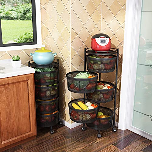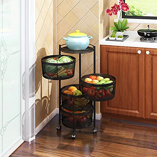 WRMOL - وحدة سلال تخزين منزلية مستديرة دبليو ار ام اوه ال، دوارة ومتعدد الطوابق وقابلة للفصل ومناسبة للمطبخ وغرفة المعيشة لتخزين الفواكه والخضروات والوجبات الخفيفة (اللون: 4 اف)، صلب كربون