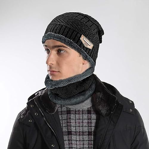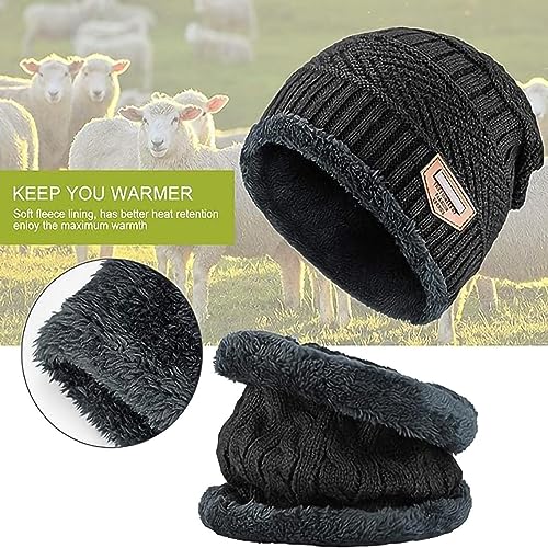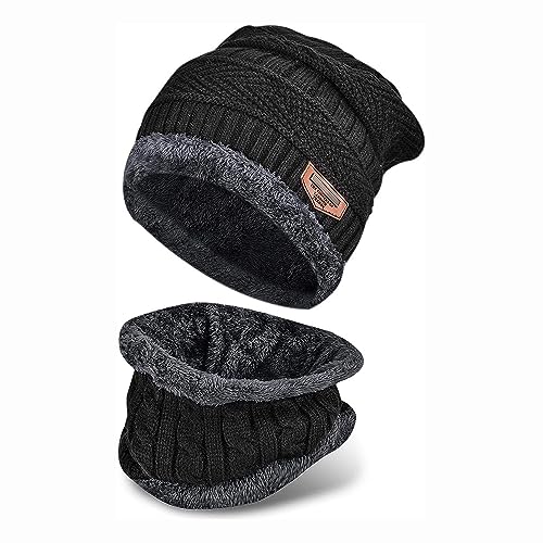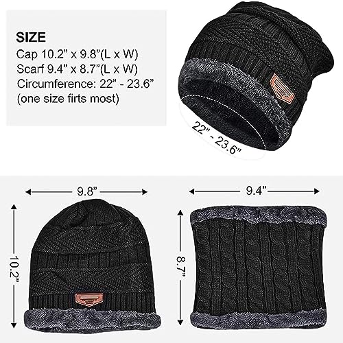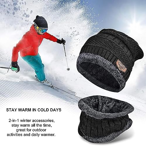 X spring - قبعات شتوية للرجال والنساء من اكس سبرينج، مجموعة من قطعتين للتدفئة، قبعة صغيرة شتوية ووشاح وقبعة جمجمة، مجموعة وشاح بيني دافئ مبطن بالصوف السميك، قبعة ووشاح شتوي