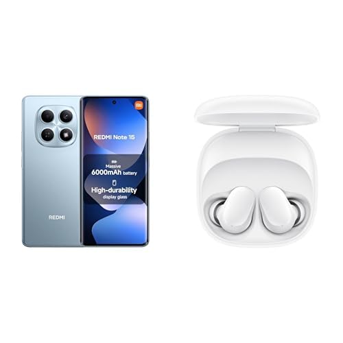 XIAOMI - هاتف ذكي ريدمي نوت 15 (6+128 جيجابايت)، كاميرا 108 ميجابكسل، ازرق جليدي، ضمان محلي لمدة 18 شهرًا + سماعات اذن شاومي لاسلكية مجانية، ريدمي بودز 6 بلاي، وقت تشغيل 36 ساعة