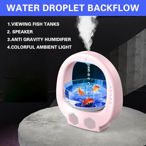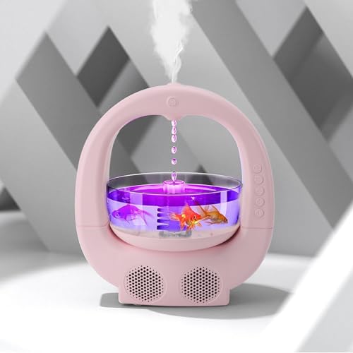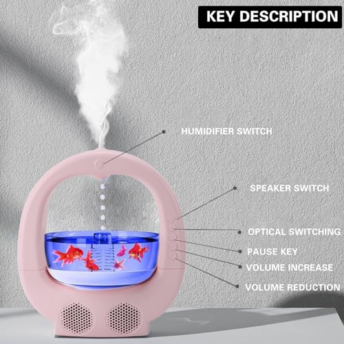 Xiuganpo - مرطب هواء هادئ برذاذ بارد مضاد للجاذبية مع حوض الأسماك وإضاءة محيطية ومكبر للصوت مزدوج بالموجات فوق الصوتية لغرفة النوم من شيوجانبو، 700 مل، لون وردي، موديل Xiuganpo42z0gcdbet-12