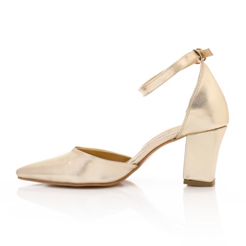Xo Style - حذاء زفاف بكعب 6 سم للنساء (ذهبي، 36)