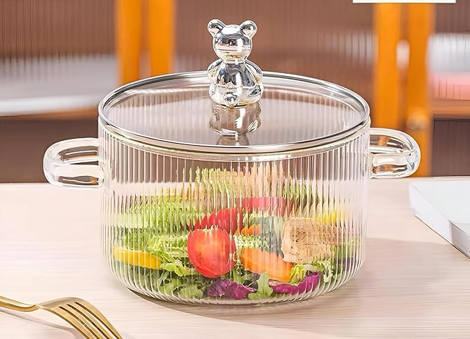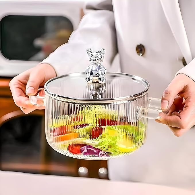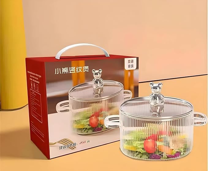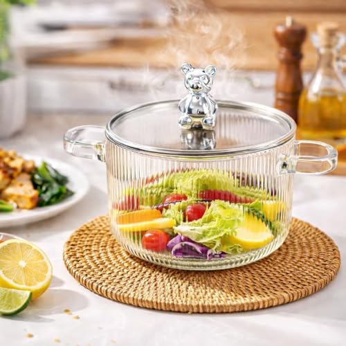 Generic - وعاء طبخ من XPY-P7، مصنوع من زجاج البوروسيليكات، شفاف، غير مطلي، سعة 2 لتر. يتضمن غطاء بتصميم دب لطيف، مثالي للتسخين وتقديم السلطات والشوربة والنودلز