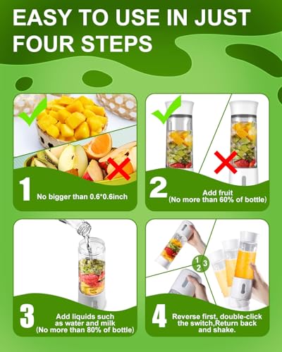 - 【صانع سموثي محمول سهل الاستخدام】أطلق العنان لقوة المشروبات السريعة والمغذية مع هذا الخلاط الشخصي عالي السرعة. يتميز بشفرات استخراج حادة للغاية ومحرك قوي، يمكن لخلاط السموذي الخاص بنا تقديم كوب من السموذي المغذي في 30 ثانية فقط. تصميم الخلاط الصغير مثالي لأنماط الحياة أثناء التنقل، مجهز بشفرات حادة من الستانلس ستيل لأداء يدوم طويلاً. تأكد من سلامتك مع محاذاة ملصق السهم على الزجاجة والقاعدة - خطوة ضرورية لخلاط العصارة المحمول ليعمل بشكل صحيح. هذا الخلاط الشخصي هو الحل الأمثل للمشروبات السريعة والصحية.