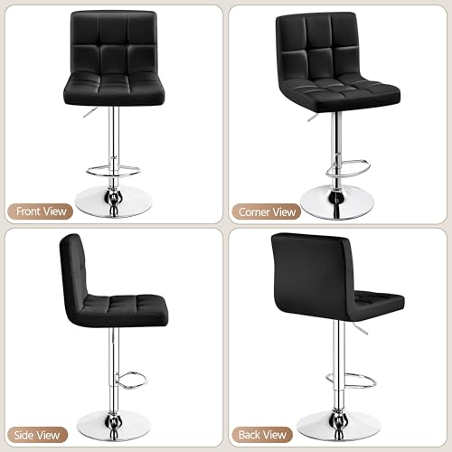 Yaheetech - كراسي بار دوارة من جلد البولي يوريثين قابلة للتعديل، كراسي طاولة عصرية مع ظهر ومسند للقدمين، كراسي بار بارتفاع المنضدة للبار والمطبخ وغرفة الطعام من ياهي تيك، مجموعة من قطعتين، أسود