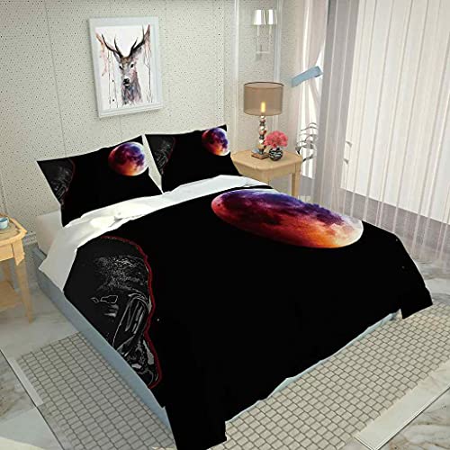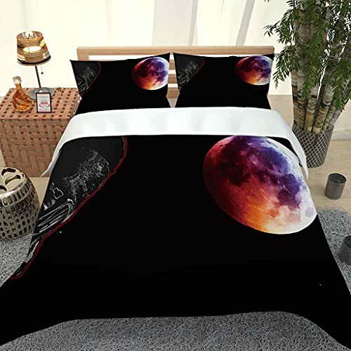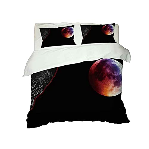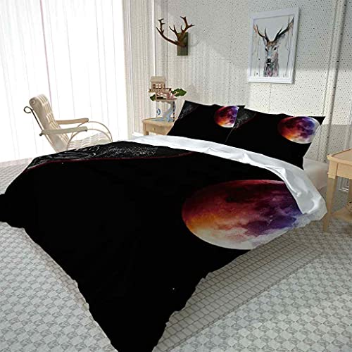 YAJVWL - طقم غطاء لحاف مزدوج من 3 قطع من واي ايه جيه في دبليو ال، غطاء لحاف من المايكروفايبر مطبوع ثلاثي الابعاد بتصميم كوكب فضاء اسود سهل العناية وناعم مع سحاب اغلاق و2 كيس وسادة (50 × 75 سم)، الألياف الدقيقة