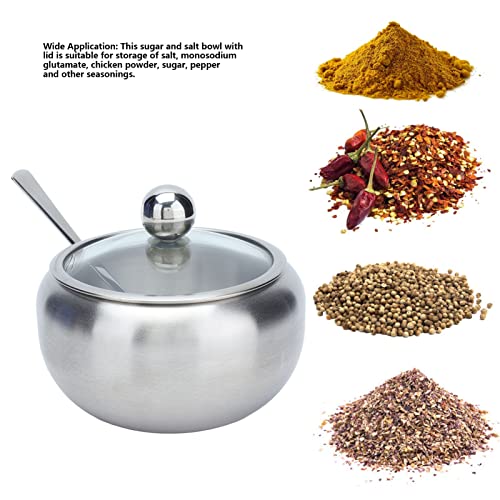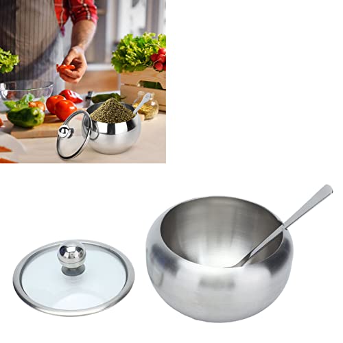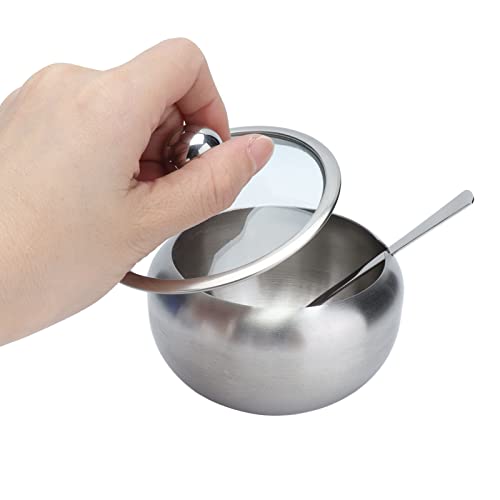 YEmirth - وعاء سكر من الستانلس ستيل بغطاء شفاف وملعقة سعة 8.7 اونصة للمنزل والمطبخ يميرث