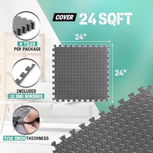 Yes4All - سجاد أرضية متشابك من الفوم لصالة الجيم مع بلاط ايفا المتشابك من ياس فور اول، لون رمادي، مقاس (2.2 م² - 6 بلاط)