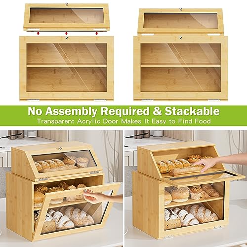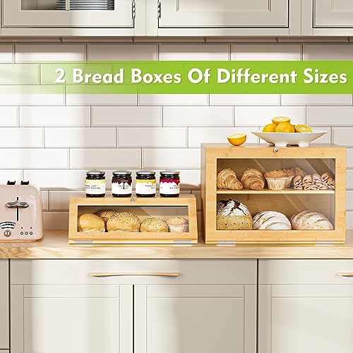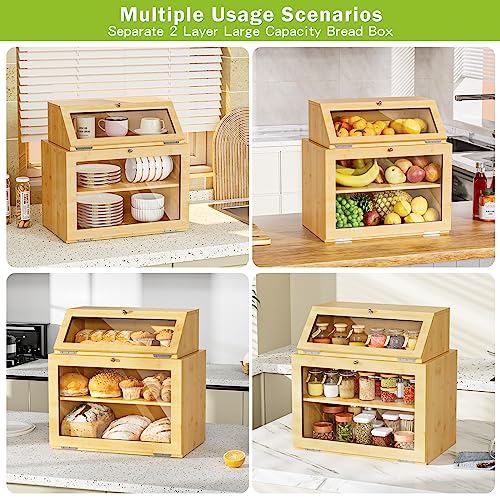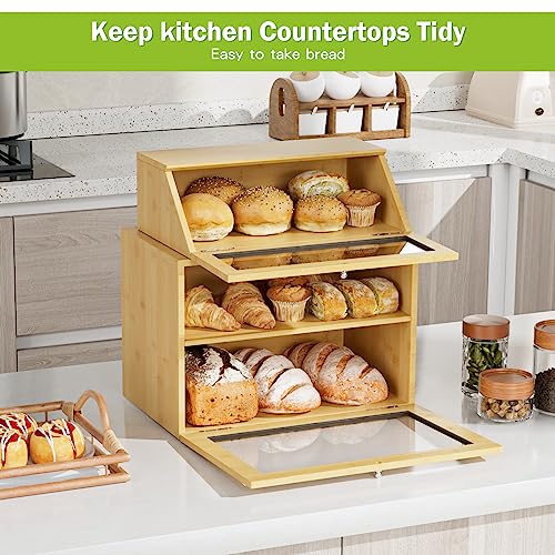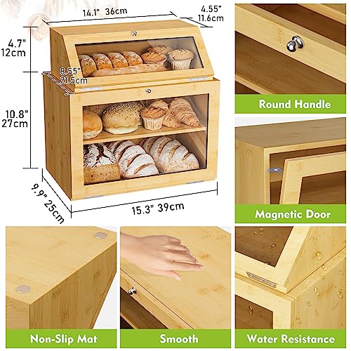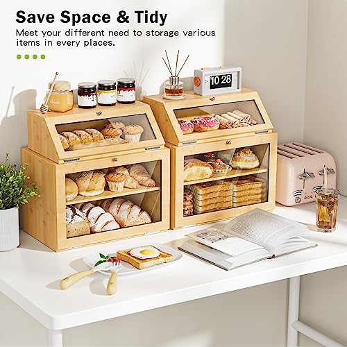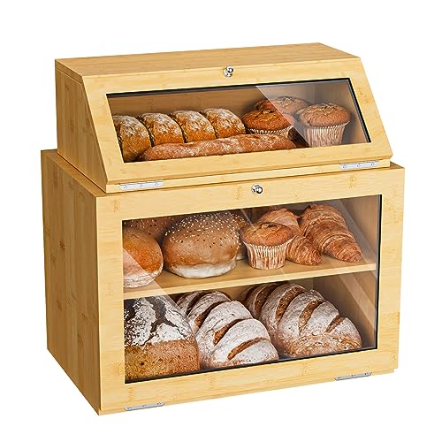 YFXCVSL - صندوق خبز من واي اف اكس سي في اس ال لمنضدة المطبخ مزدوج الطبقات بدون تجميع حاوية الخيزران مع نوافذ شفافة تخزين طعام للمطبخ بسعة كبيرة