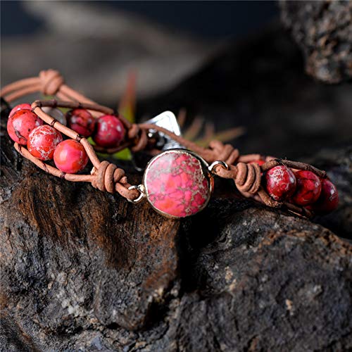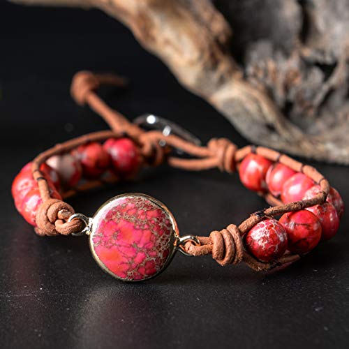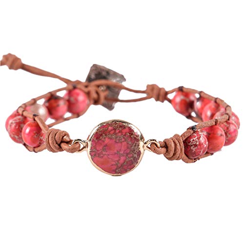 YGLINE - اساور خرز متوافقة للازواج بحجر عقيق ابيض للنساء من يجلاين, جلد