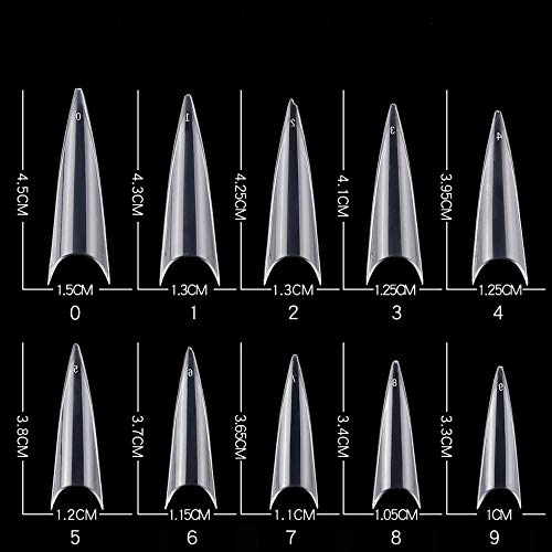 Yimart - أطراف أظافر مدببة متوسطة الطول من الاكريليك، أطراف تزيين الأظافر الصناعية الحادة سهلة الاستخدام لصالونات التجميل من يمارت، مجموعة من 500 قطعة، لون طبيعي