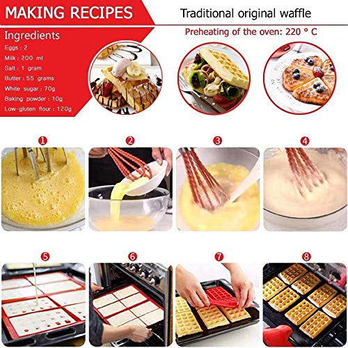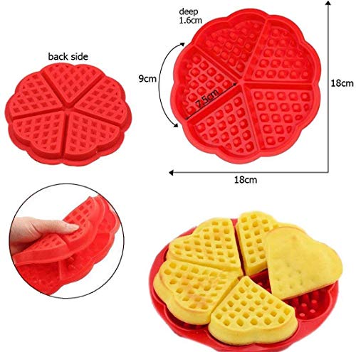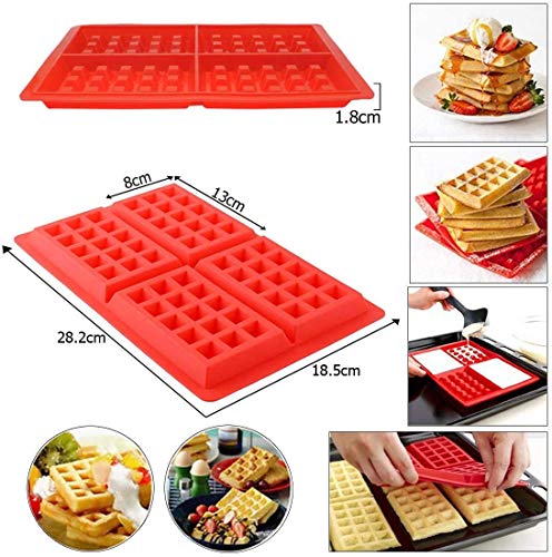 YIQI - قالب وافل سيليكون للخبز والوافل والكعك ومكعبات الثلج مناسب لغسالة الاطباق والفرن والميكروويف، قطعتين، أحمر، من ييكي