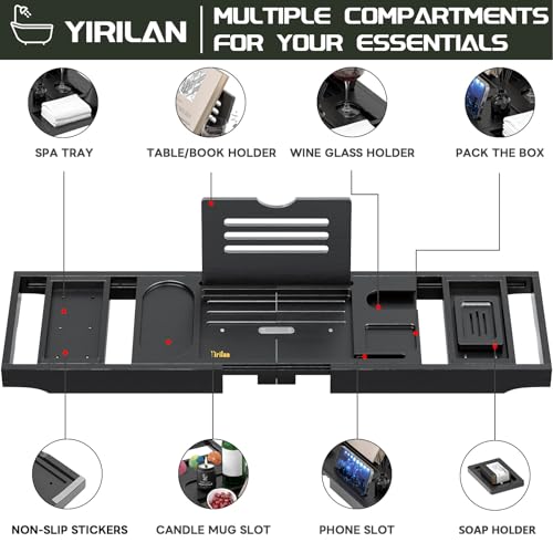 Yirilan - ييريلان علبة حوض استحمام قابلة للطي، صينية حوض استحمام قابلة للتعديل للكتب والتابلت والموبايلات، مناسبة كهدايا، اسود