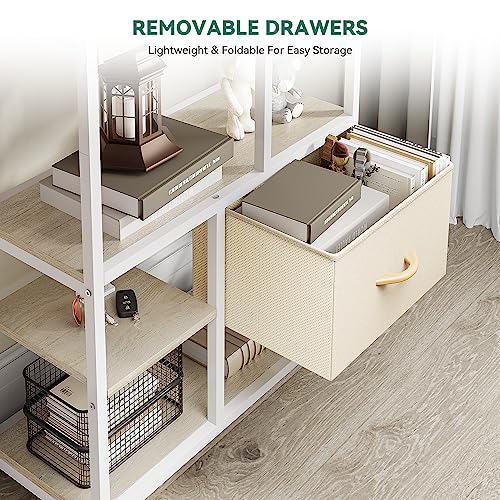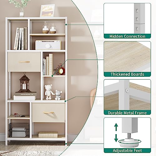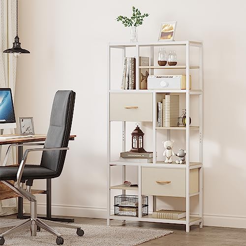 YITAHOME - يتا هوم خزانة كتب من 7 طبقات مع ادراج رف قائم على الارض وحدة رفوف صناعية اطار ستيل لغرفة المعيشة المكتب الدراسة الرواق المطبخ بيج