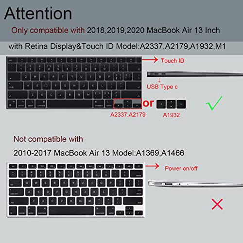 - حماية 360 درجة - ماك اير 13 M1 A2337 A2179 A1932 غطاء مطاطي بلاستيكي متين لتوفير أقصى قدر من الحماية ضد الصدمات والخدوش والتلف اليومي.