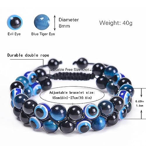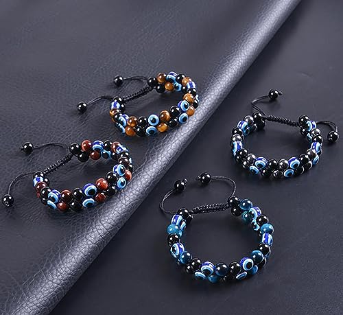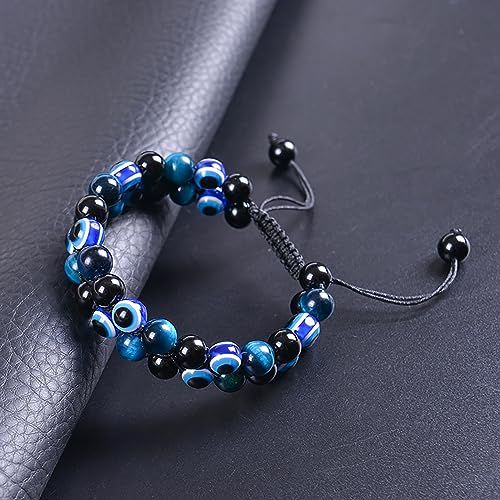 YOTHIWAD - سوار خرز عين الحسد للنساء والرجال من يوثيواد، سوار متعدد الطبقات قابل للتعديل، مجوهرات هدية للذكرى السنوية واعياد الميلاد والكريسماس، سوار عين الحسد للحماية والمباركة