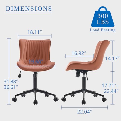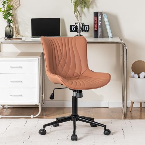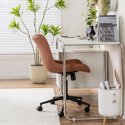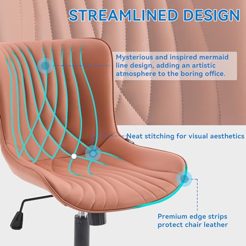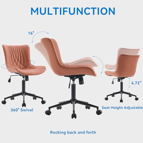 YOUNIKE - كرسي مكتب من يونيكي بدون ذراعين مع عجلات كراسي مهام الكمبيوتر المنزلية فانيتي مبطن الجلد الصناعي هزاز دوار مريح قابل للتعديل ظهر كورال بينك زهري جلد صناعي