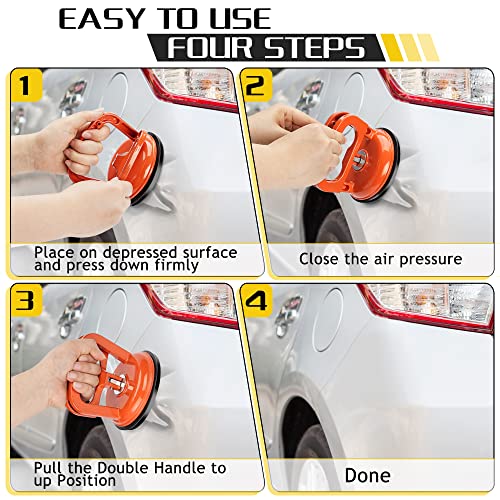 - 【أفضل خيار لإصلاح انبعاجات السيارة】أداة إزالة انبعاجات السيارة هي الأداة المثالية لنقل الأشياء المسطحة في أي مرآب منزلي أو متجر هياكل احترافي. ما عليك سوى وضع أداة سحب انبعاجات السيارة بالشفط على سطح الجسم، ونظف الانبعاج وتسخينه بالماء الساخن، وابدأ التشغيل من الخط المقعر الضحل ثم اضغط بقوة وتأكد من ملاءمة كوب الشفط بسلاسة، اسحب كوب الشفط بلطف باستخدام المقبض، وسيتم سحب سطح الانبعاج لأعلى باستخدام أداة سحب الانبعاج.