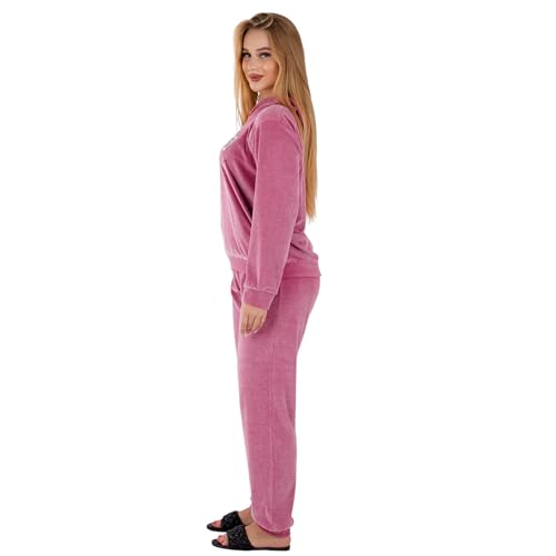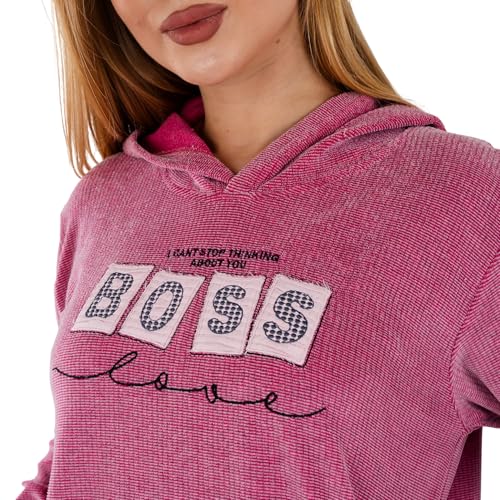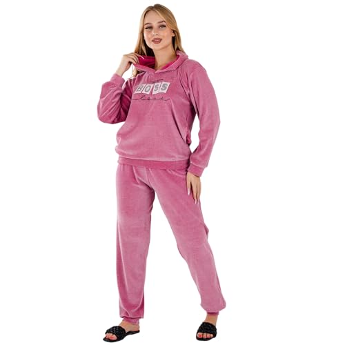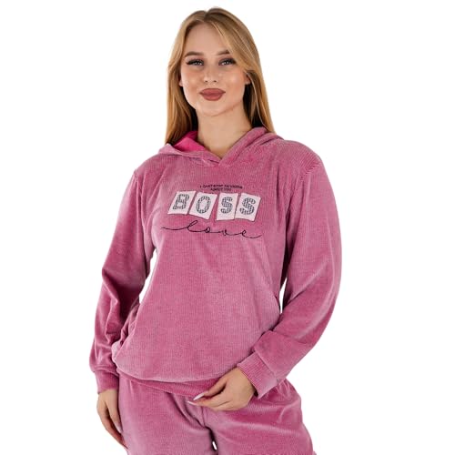 ZECOTEX - زدكوتكس طقم بيجامة قطيفة مضلع للنساء | هودي وبنطلون مطرز بكلمة "Boss" | طقم بيجامة حريمي قطيفة مضلع مطرزة مريحة وشيك