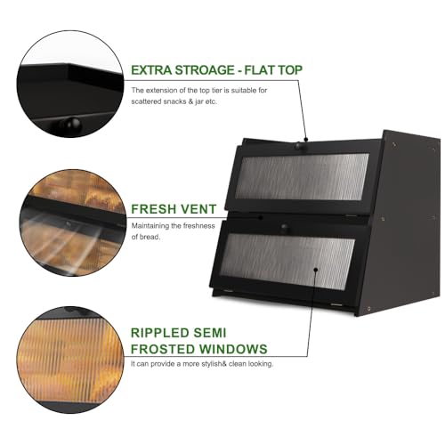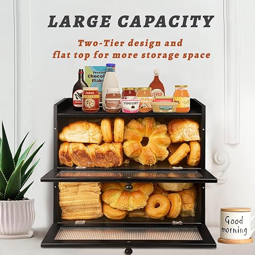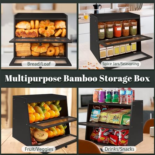 - مساحة تخزين واسعة مزدوجة الطبقات لكل متعة الطهي: جرب رفاهية مساحة التخزين الوفيرة مع صندوق الخبز المصنوع من الخيزران مزدوج الطبقات الذي يستوعب جميع مخبوزاتك