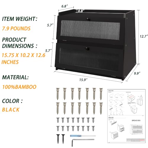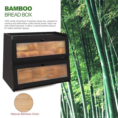 ZenKitch - صندوق خبز من زينكيتش، حاوية تخزين خبز من الخيزران لطاولة المطبخ، حامل خبز بسعة كبيرة مع نافذة (اسود)