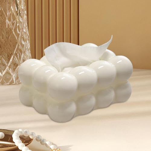 Zetqhuu - منظم مناديل ورقية أبيض من البولي بروبلين بتميم فقاعات (بولي بروبلين)