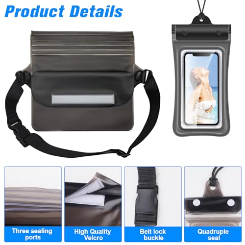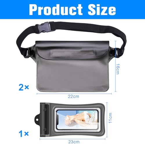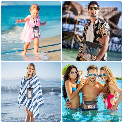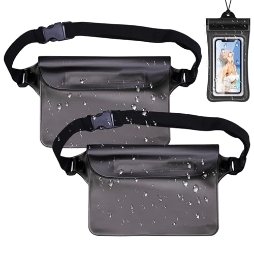 ZIGefofo - حافظة مقاومة للماء مع حزام قابل للتعديل جراب موبايل مناسب للرياضات المائية والشاطئ والسباحة والقوارب والرحلات من زيجيفوفو عبوة 3 قطع بولي فينيل كلوريد PVC أسود