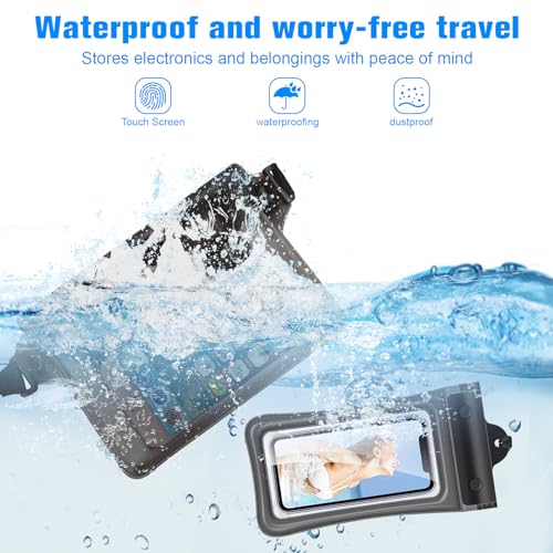 - شاشة قابلة لللمس: حقيبة شبه شفافة مقاومة للماء تعمل باللمس، لن تضطر إلى إخراج هاتفك من الحقيبة للتحقق من رسائل البريد الإلكتروني أو الرسائل أو حتى الرد على المكالمات وإرسال الرسائل النصية والتقاط الصور والانغماس الكامل في تجربة المغامرة.