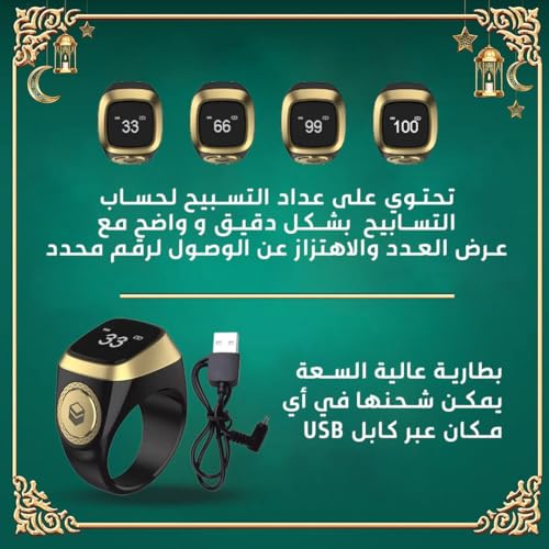 - مزود بزر التسبيح وشاشة OLED لعرض الوقت والتذكير بمواعيد الصلاة.