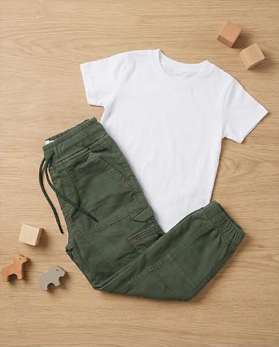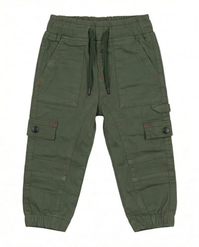 Zona Kids - بنطلون رياضي كارجو كاجوال من القطن الناعم بخصر أستك وجيوب خفيف الوزن للارتداء اليومي للأطفال الصغار والأطفال الأولاد من زونا كيدز