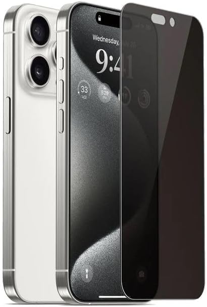 - متوافق مع شاشة الخصوصية غير اللامعة لموبايل ابل ايفون 15 برو ماكس مضاد للتجسس، واقي شاشة، مضاد للتوهج، مضاد لبصمات الأصابع