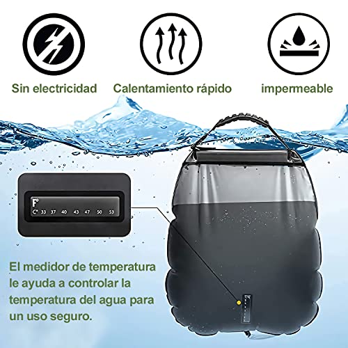- 【دش التخييم بالطاقة الشمسية】حقيبة الاستحمام الشمسية مصنوعة من بلاستيك PVC الذي يسخن الماء حتى 45 درجة مئوية (111 درجة فهرنهايت) في 3 ساعات عند تعرضه لأشعة الشمس المباشرة. يوجد في حقيبة الاستحمام القابلة للطي مؤشر لدرجة الحرارة (درجة مئوية/درجة فهرنهايت) عند الاستحمام المحمول للتخييم، يمكنك قراءة درجة حرارة الماء بسرعة.