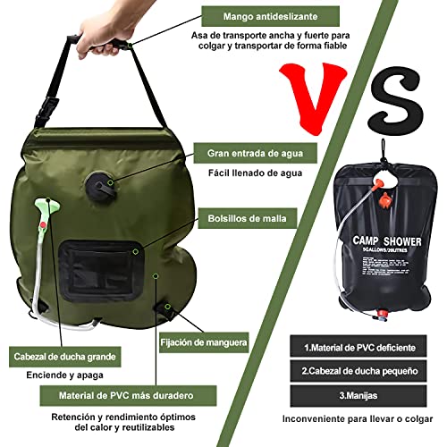 - 【دش تخييم يعمل بالطاقة الشمسية】حقيبة استحمام صيفية مع خرطوم قابل للإزالة ورأس قابل للتبديل مع تدفق مياه منخفض إلى مرتفع سهل الدوران. حقيبة التخييم خفيفة الوزن بسعة 20 لتر مثالية أيضًا للأنشطة الخارجية مثل التخييم وحقائب الظهر والقيادة الذاتية وصيد الأسماك أو الصيد والسفر والمشي.