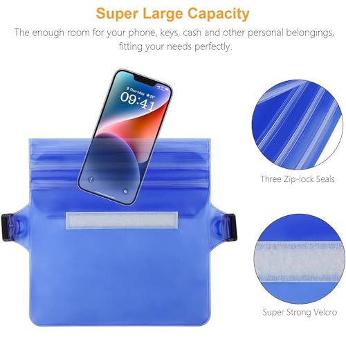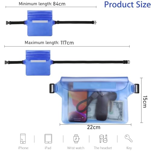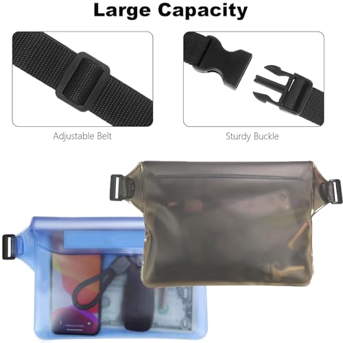 شنطة مقاومة للماء مع حزام خصر قابل للتعديل من يريبن، شنطة خصر شفافة قابلة للمس لاغلاق محسن للشاطئ والسباحة وركوب القوارب وصيد الاسماك والمشي لمسافات طويلة وغيرها من قطعتين