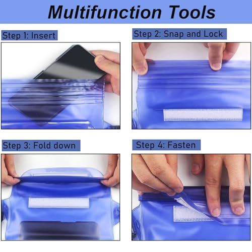 - ضمان مقاومة الماء - مع أداء مانع للتسرب مقاوم للماء (تصنيف IP68)، توفر هذه الحقيبة المقاومة للماء حماية شاملة للأجهزة في مجموعة متنوعة من البيئات. تشتمل الميزات على ثلاثة أقفال بسحاب وشريط فيلكرو قابل للطي فوق الجزء العلوي، مما يضمن إغلاقًا مثاليًا ويحافظ على هاتفك والأشياء الثمينة آمنة وجافة.
