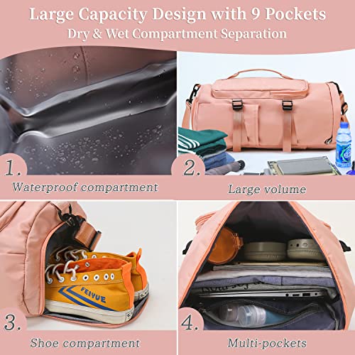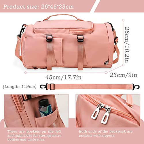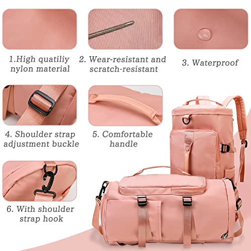 شنطة ظهر دفل L رياضية 4 في 1 بجيب للاغراض الرطبة وقسم للاحذية سعة 35 مل ضد الماء ملائمة للجنسين لصالة الالعاب الرياضية والتنقل واليوجا والتنزه والتخييم مزودة بـ9 جيوب, زهري، من توبريتي، نايلون