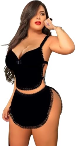 لانجري مميز مكون من قطعتين لون أسود، مقاس واحد