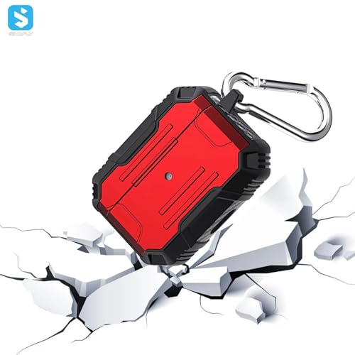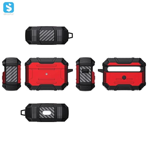 جراب سماعة من Next Store متوافق مع AirPods Pro 2 بسلسلة مفاتيح لحماية كاملة ضد الصدمات بغطاء كربوني المقاوم للحرارة للنساء والرجال باظهار لمؤشر LED الامامي. (احمر)
