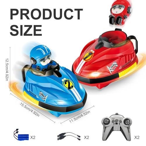 - مجموعة ألعاب سيارات تعمل بجهاز تحكم عن بعد: ستحصل على سيارات سباق ذات تناسق لوني ملف باللونين الأحمر والأزرق، ما سيأثر انتباه الأطفال في الحال! تحتوي أيضًا على 2 دُمىة لعبة قابلة للفصل، و2 جهاز تحكم عن بعد بتردد 2.4 جيجاهرتز، و2 بطارية قابلة لإعادة الشحن، وسلكَي شحن لبطاريات الليثيوم. تتميز سيارات الصدمات بسرعتها العالية وتصميمها المخصص للمنافسات الثنائية، ما يمنحك تجربة تحكم رائعة!
