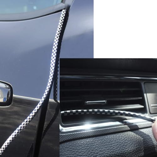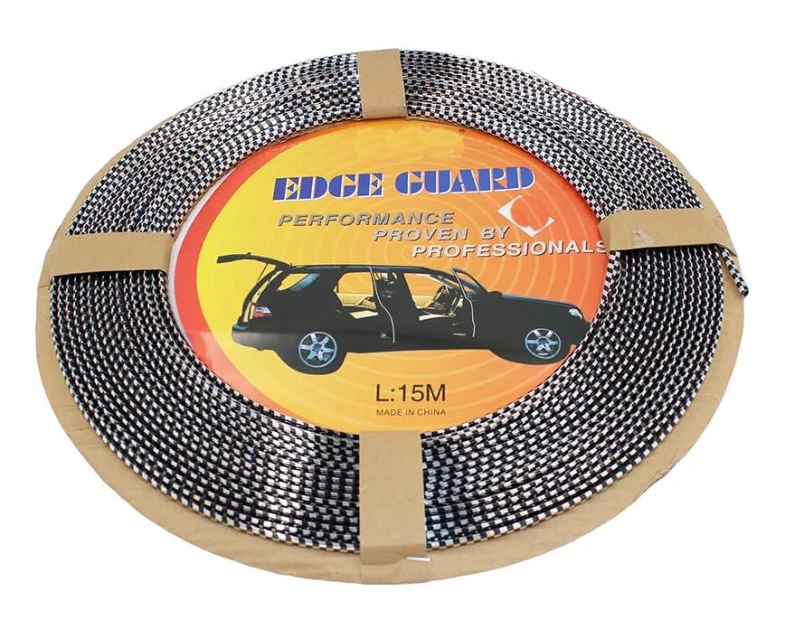 شرائط عالمية مطلية بالكروم يمكن تشذيبها يدويًا حسب الرغبة لتزيين حواف باب السيارة وديكور للحواف داخل السيارة ، يناسب معظم السيارات - طول 15 متر - لون كاربون(اسود*ابيض) - من كابر مصر 2020