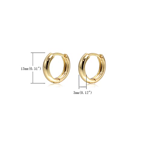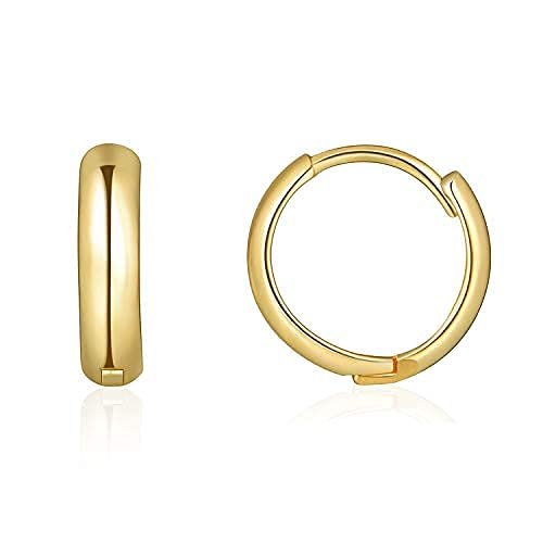 حلق دائري هوجي صغير خفيف الوزن لغضروف الاذن مطلي بالذهب عيار 18 قيراط ومضاد للحساسية للنساء والبنات, 14mm, بدون أحجار كريمة، من كي ار ستودنت
